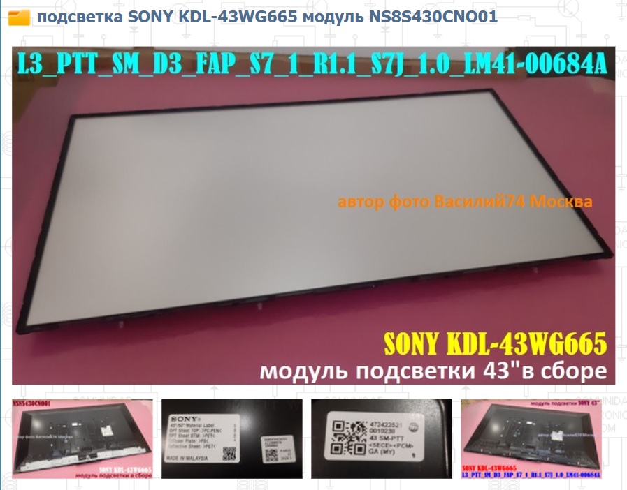 РАССЕИВАТЕЛЬ -СВЕТОВОД ДЛЯ TV SONY 43"