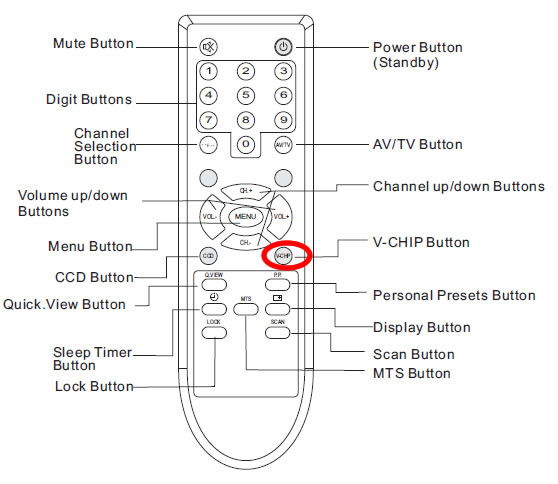Попробуйте нажать на пульте кнопку V-chip (на рисунке выделена красным) и приведенный выше пароль. Это мастер-пароль, используется в случае если Вы забыли пароль, который установили в меню V-chip (на Вашем ТВ оно может по другому называться). V-chip.jpg
