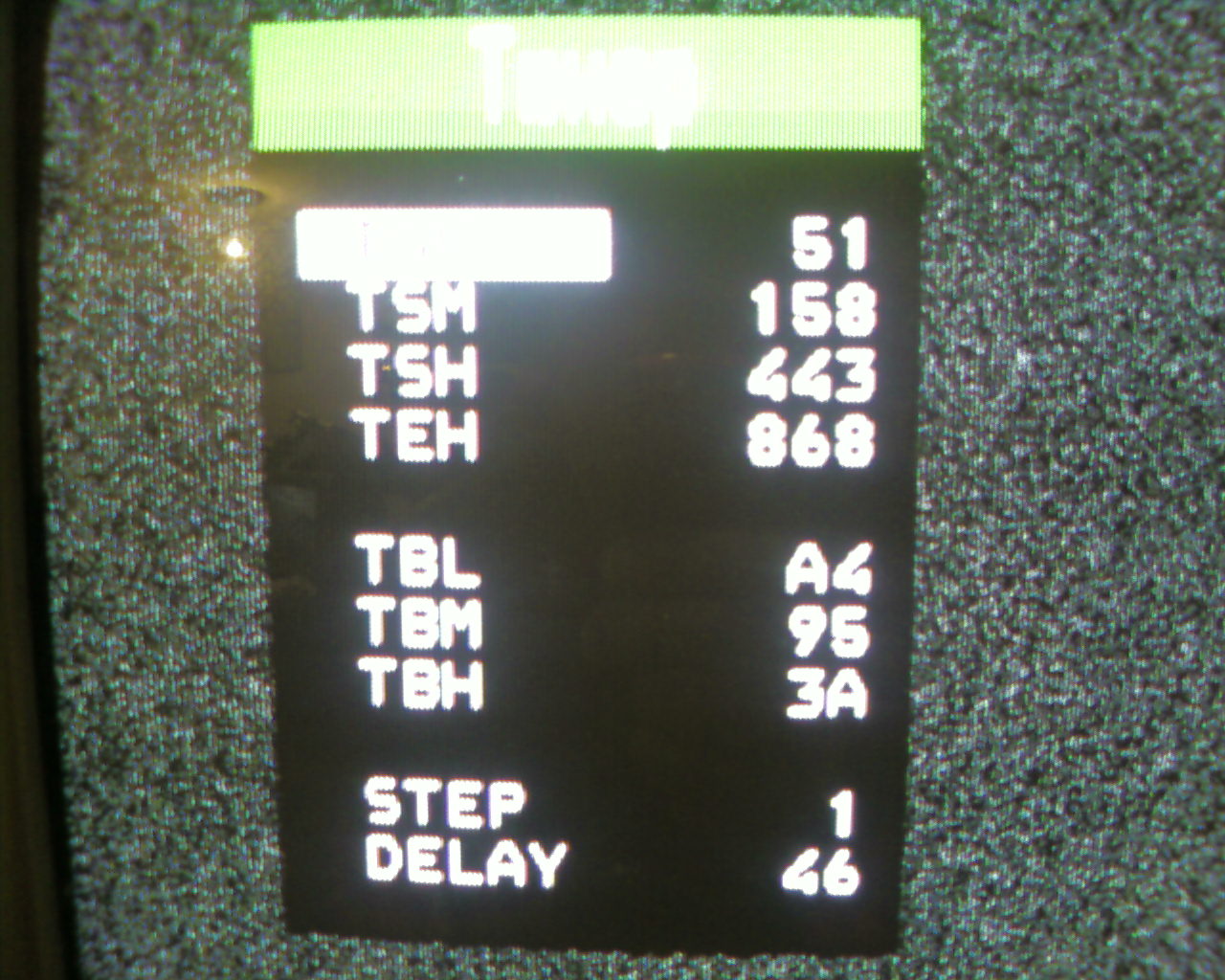На старой прошивке вошел в сервис. В опции EVG установил 0. Экран стал синим с отсчетом времени. Меню настроек есть, настройка на каналы производится, но каналы не настраиваются, с AV входа тоже пусто. Вход в сервис: (M) (OK) (Mute) (Pover). Фото в сервисе "Техно-Меню" прилагаю(без геометрии) Photo-0092.jpg Photo-0091.jpg Photo-0090.jpg