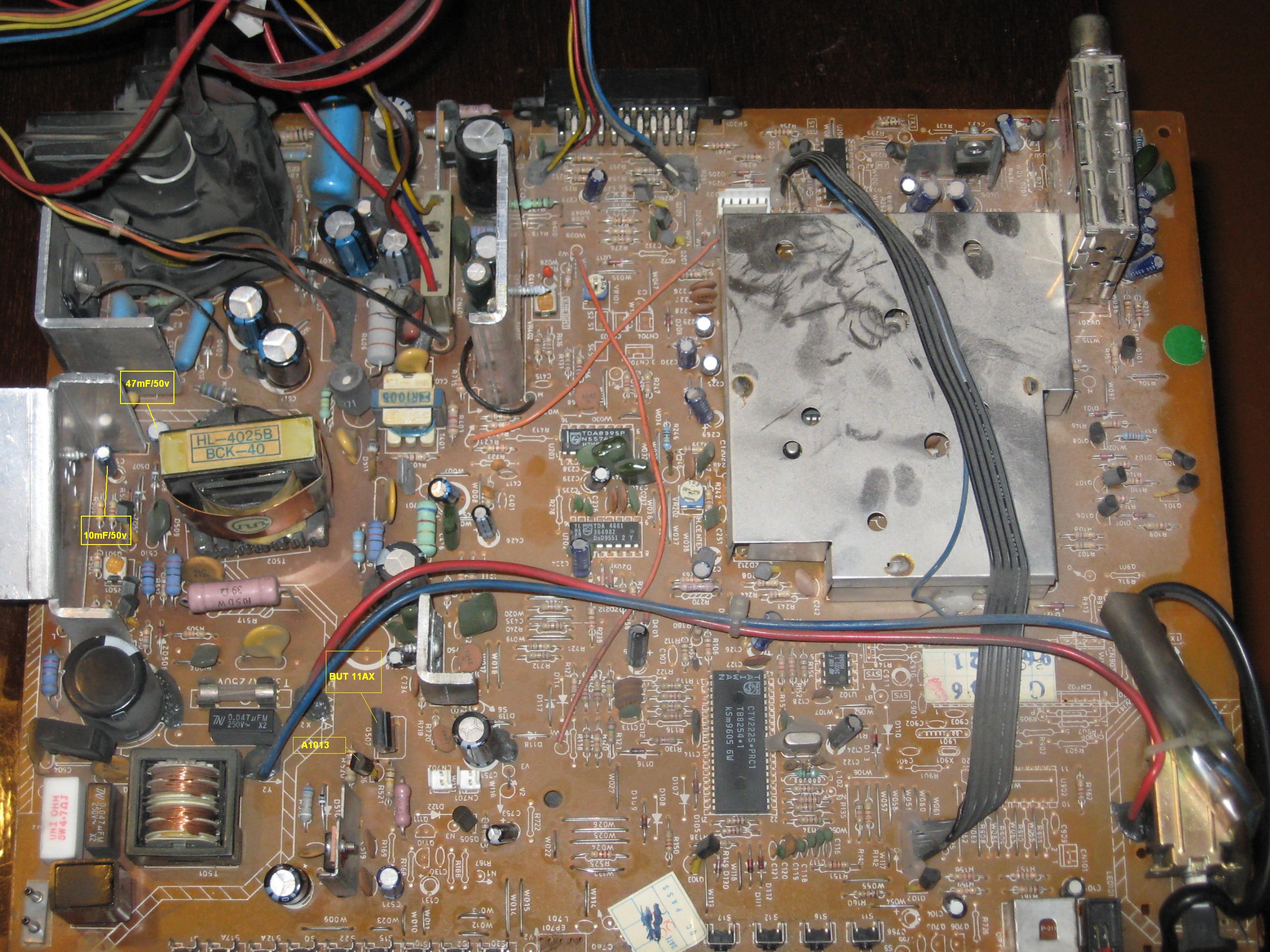 Поменял. Кстати по схеме С609 - 10 mF/50v, а С610 - 47mF/50v, но в реальности С609 - 47 mF/50v, а С610 - 10mF/50v.