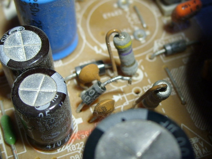 А имелся в виду случай, когда питания были в норме, но несправна микра LA78040N, коснувшись входа которой (случайно выявлено), можно было доли секунды наблюдать выехавший сверху заворот с просматриваемым изображением. А выглядело так, будто раст был, но тусклый, серый. Вот и всё!
