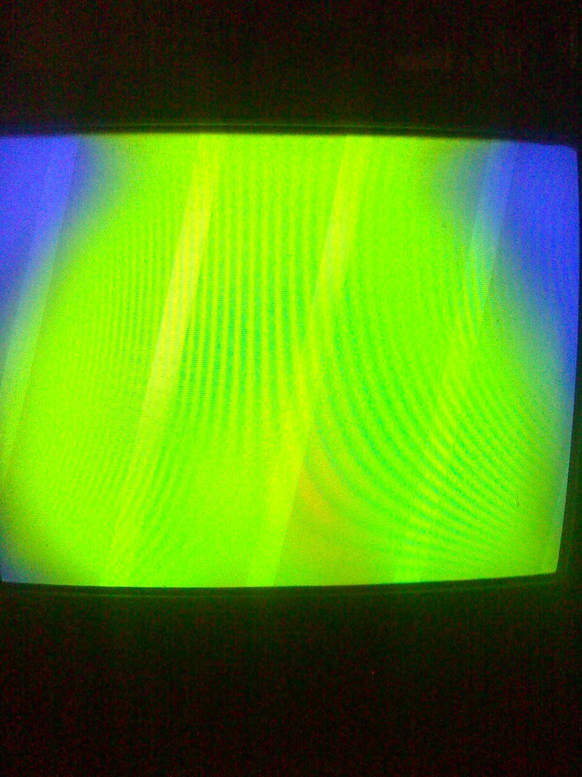 1.Фото, я включил канал AV - чтобы продемонстрировать пораженную зону. Экран должен быть весь синим! А всё зеленое - это и есть..моя беда.