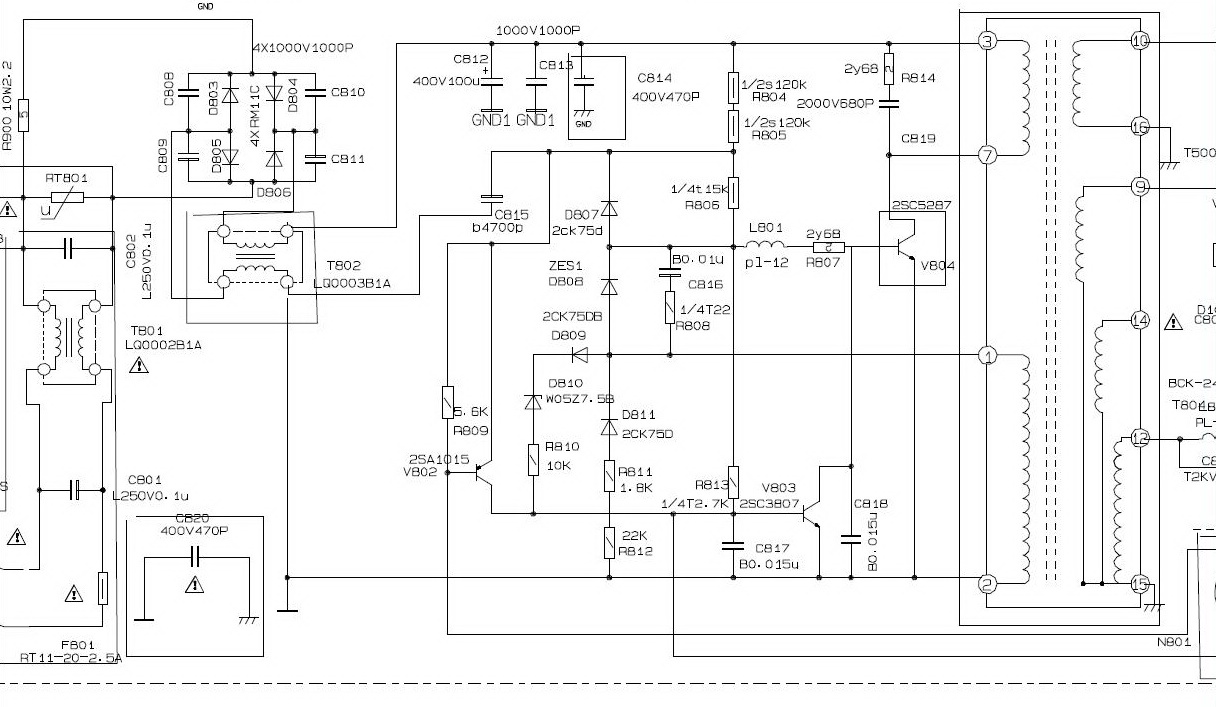 Схема наверно такая. Проверь в 1-ю очередь резисторы R804,R805, конденсатор C819(по этой схеме) и разумееться все детали первички.
