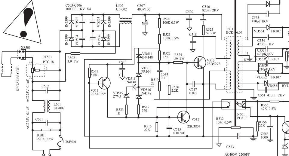 вкартце че менял:C516 820PF 2kW,VD516 1N4148,C515 0,015uf,c517 0,022,N501 PC817 ну и транзюки соответственно