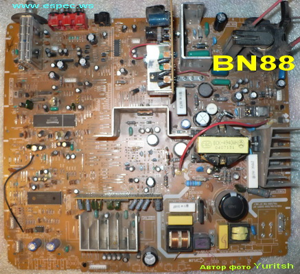 Литы в первичке не проверять,а менять надо.Измеритель ёмкости не даёт никакого эффекта.Надо ESR проверять у литов,а потом ёмкость.Шасси BN88,у тебя на фото.Схема http://archive.espec.ws/section548/file15208.html