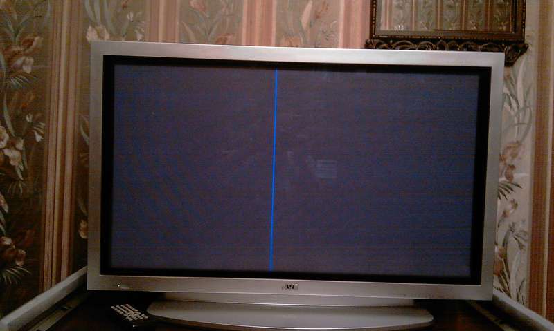 На экране плазменной панели присутствует вертикальная синяя полоса, которая заметна только при темном (черном) фоне картинки: