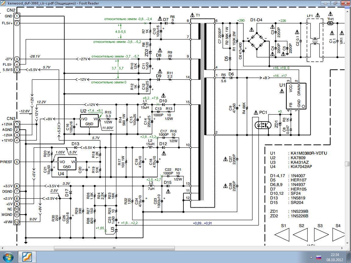 Добрый день "Zews", совершенно верно оптопара рядом со стабилитронам. На КЗ вроде не похоже-напряжение везде есть, только занижено. Что же касается простоты, для меня это очень сложно-просто это классический БП транс-мост-стабилизатор... *cray2* Но субъективно, нельзя бросать дело только потому что сложно. Я пончалу грешил именно на правую часть, поскольку по логике, если просело везде, надо смотреть что у этого везде общее, но оптопара звонится на плате и излучатель и приемник. а вот что не понятно, так почему на U1 0 вольт.