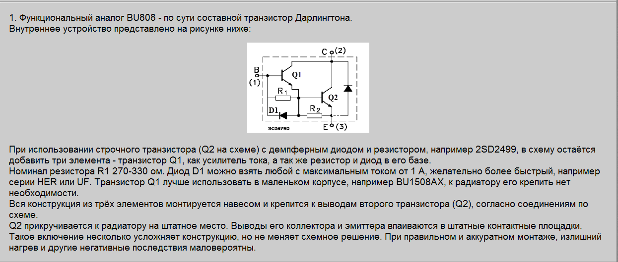 В БП.поменял стабилитроны D801 и IC818,оптопару IC801,кондёр С810,шим МС44608Р40,полевик Q801(6N60).В строчной BU 808 DFI,и электролит в базе 47х50в(параллельно ему керамический поставил на 0,1х250В и транзистор перед ним поставил КТ972А вместо импортного.( подходящей схемы на строчную я не нашёл) Вроде бы всё!