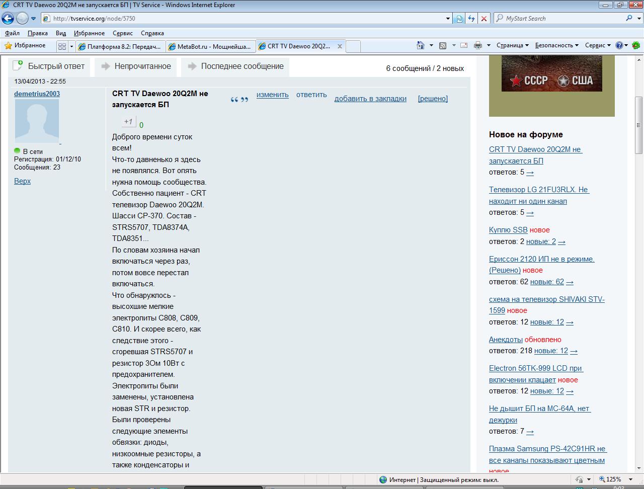 Собственно пациент - CRT телевизор Daewoo 20Q2M. Шасси CP-370. Состав - STRS5707, TDA8374A, TDA8351...