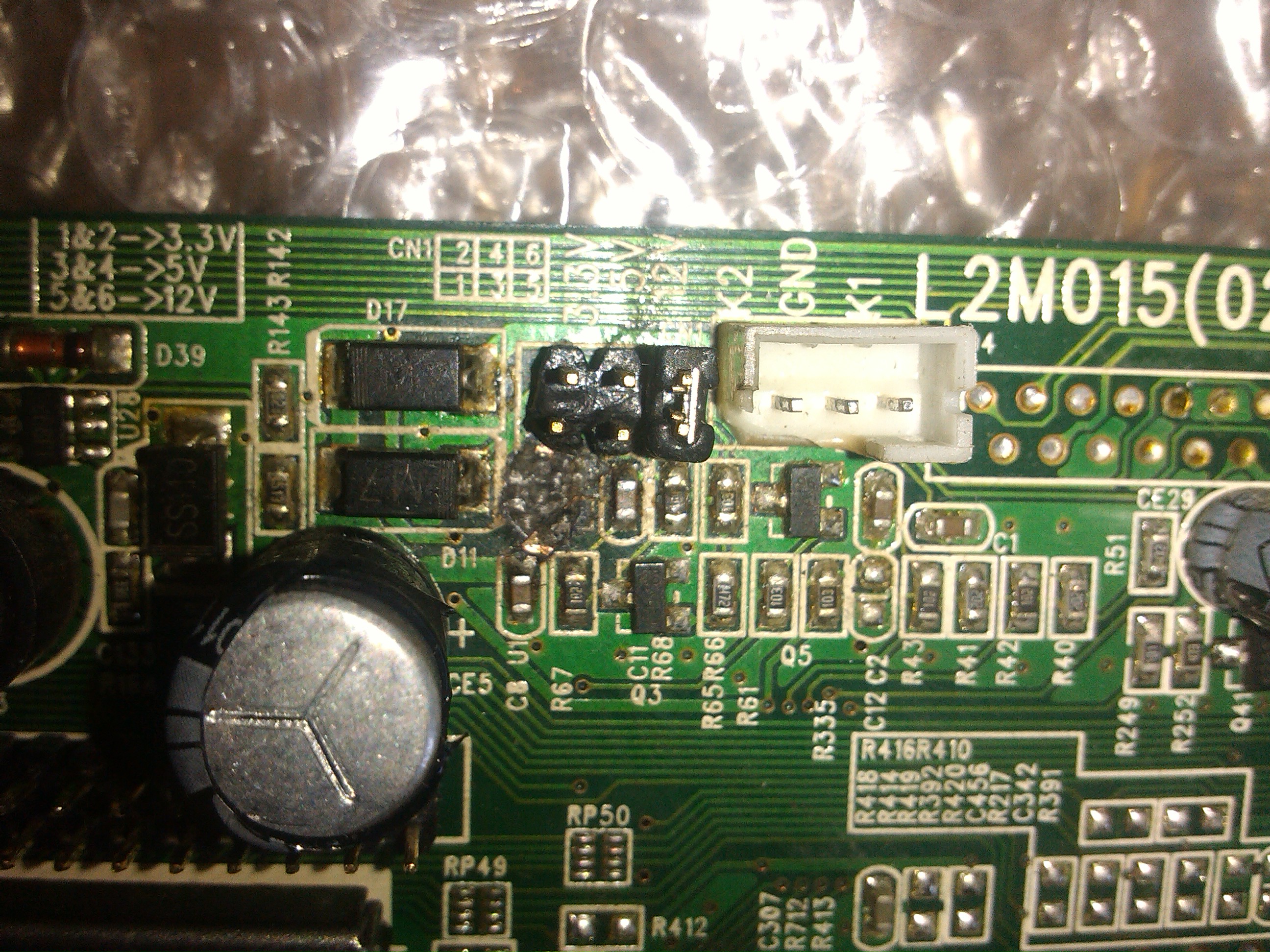 Классно выгорело. Даже емкость вроде как вскрылась. А транзистор ставь любой P-канал полевик, например AO3401.