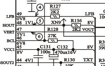 Прочитал тема почти как у меня 49 нога с землёй результата не даёт сравнил напряжения с другим мш 37 на 49-1.2 на 46- 6.3 заменил у больного с148 и vd106 результата нет причём на катоде и дальше до 8 ноги тдкс напряжение 6.5 в такое же как и у донора значит получается STV2249H под замену? И ещё параллельный вопрос у такого же донора(мш 37 )нет фокуса при нормальном ускоряющем а при уменьшении ускоряющего появляется фокус но соответственно нет растра при повторном перезапуске может это из за тдкс вместо рет 22-15 установлен 23-02 ?