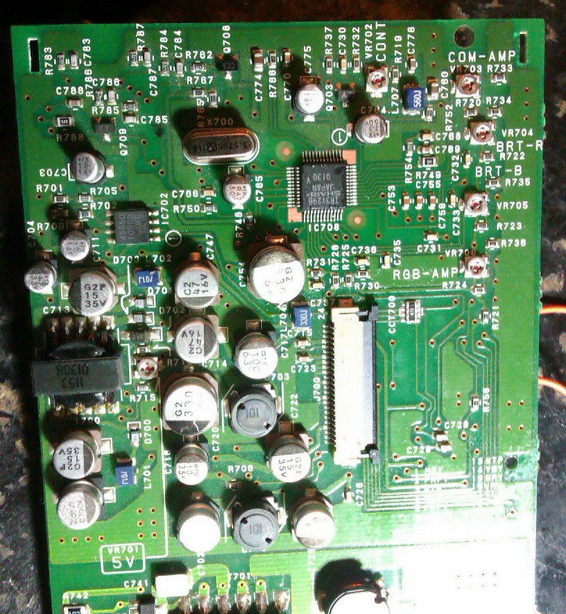 Пробовал подавать видеосигнал на 3 ножку микросхемы. Он туда и так подключался, на магнитоле был отдельный композитный видевход. Получаю черно-белое изображение. Сигнал в NTSC. В PAL картинка вообще по вертикали скачет.