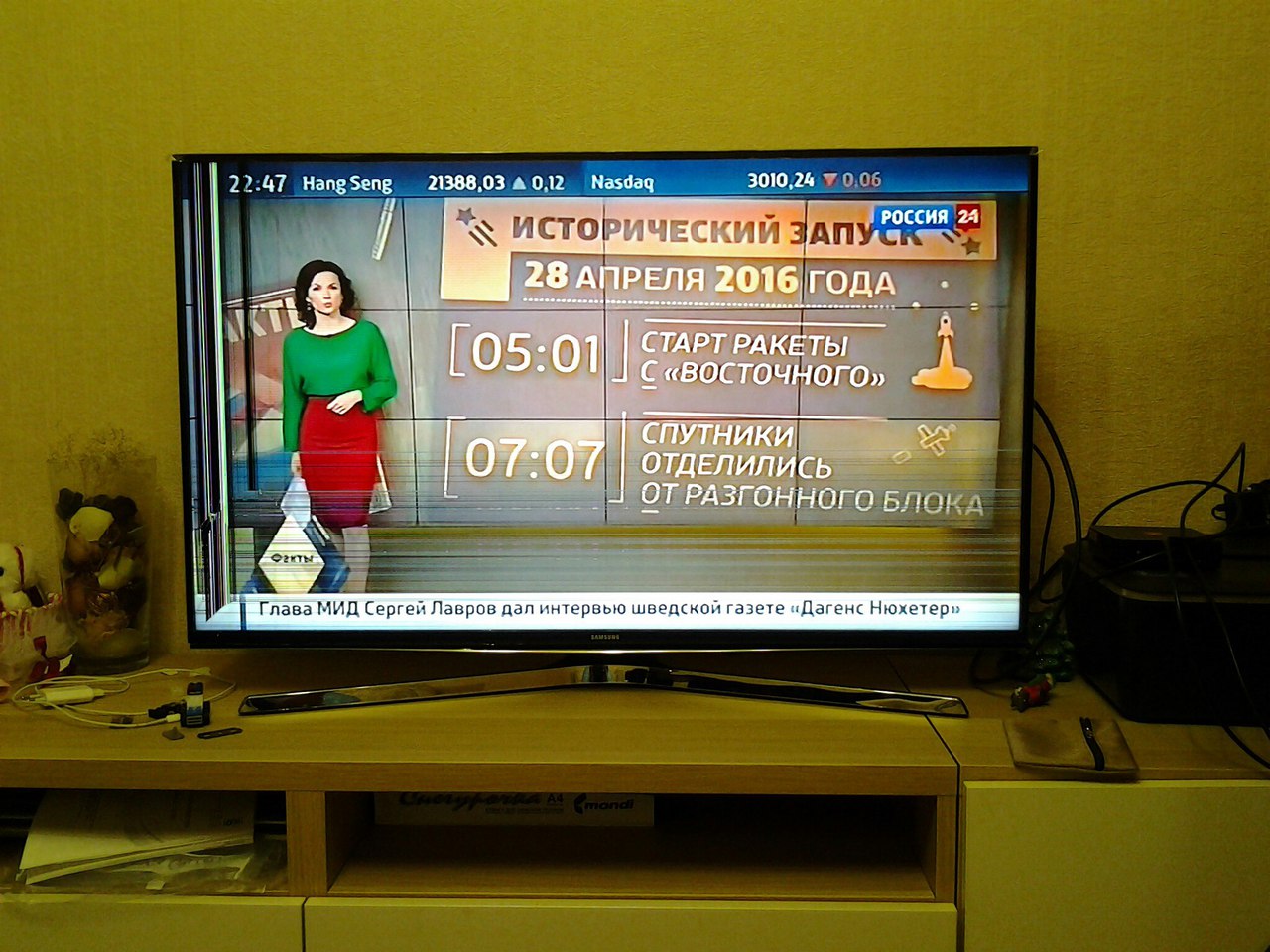 Телевизор Samsung UE40J6330 упал, появилась царапина, затем вообще погас