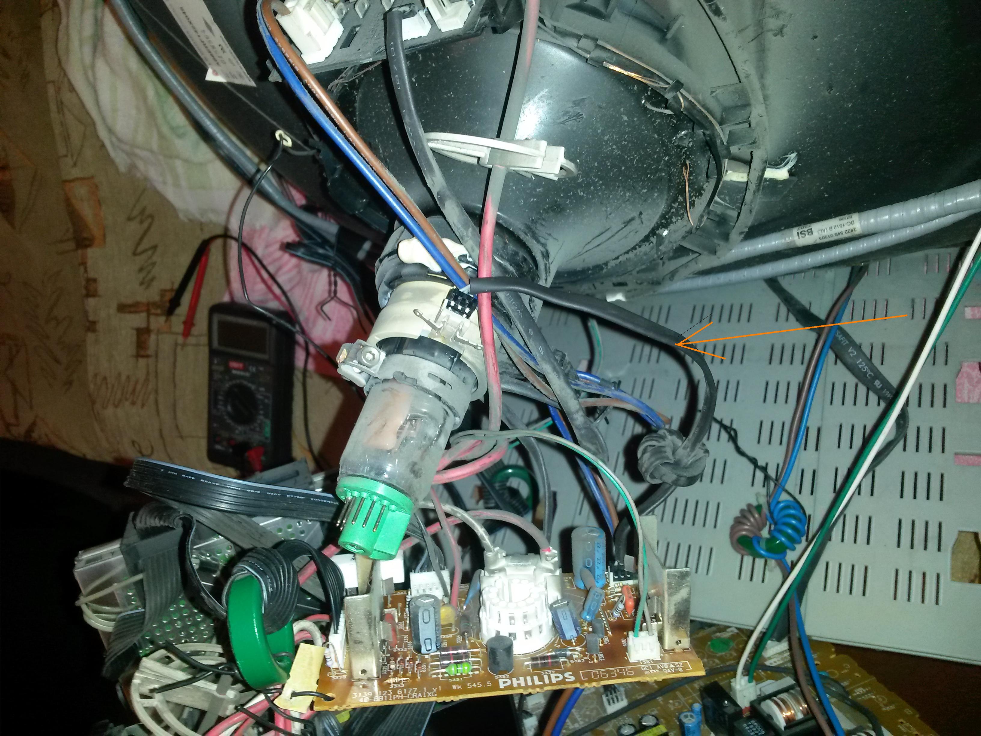 Спасибо всем за отзывы! Провод идет с платы CRT PANEL от разъема 1361 (в схеме, которую я приложил, он тоже показан - TO SCAVEM COIL. Чуть позже сфоткаю его, померяю напругу на 1257 и отпишусь