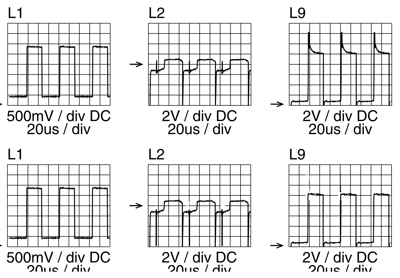 измерения осцилографом показали что на фото верхняя строка должно быть... нижняя что у меня... транзисторы целые кондеры эл литы емкость в пределах 4% от номинала ESR в норме
