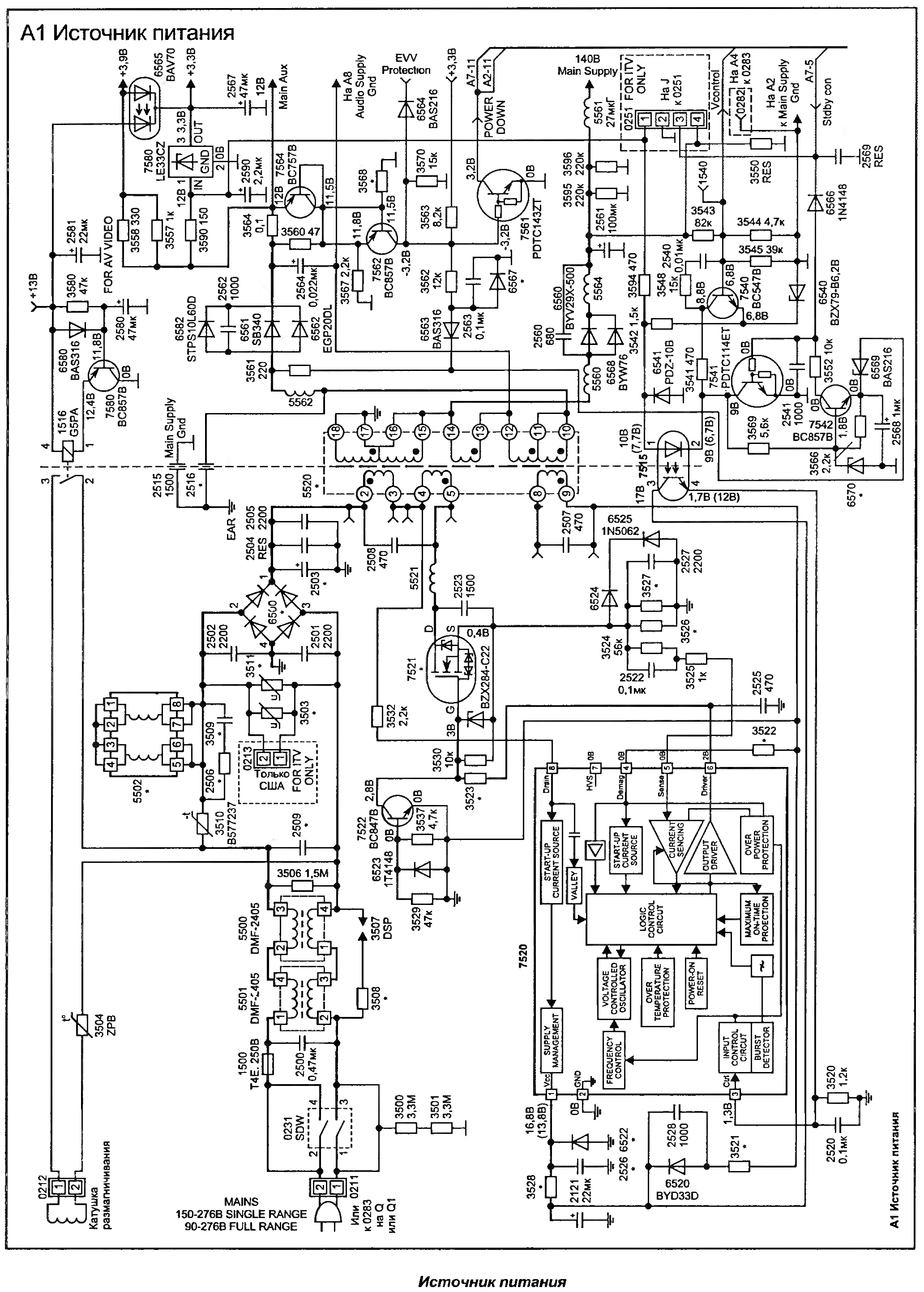 Она здесь, построена на проц TDA9555\N1 и транзисторе 7400 -3N70 Ну даже , выпаяв этот транзистор ,аппарат вырубается .Хотя по мануалу вроде как не должен Позже выложу замеры на процессоре. Разгадка близко но где? Проц к стати родной стоял TDA9555/N1/3 была не полная графика и не выходило на некоторых выв с него питания. Я его заменил на проц TDA9555/N1/3 Графики стало больше, но аппарат все ровно вырубается в дежурку . Кин понятное дело не первой свежости, (пушки все подсевшие )но все ровно так вести аппарат вроде не должен . SKREN-крутил толку ни какого