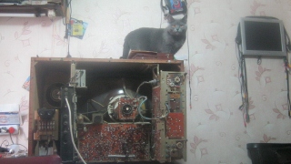 Говорили же,, "13--число не счастливое"!!Возврат принесли (два дядьки на носилках)..13 лет назад ремонтил этот аппарат,Эта кошка таких TV ещё не видела.