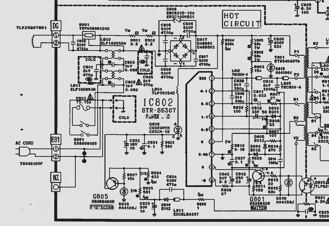 Вот фрагмент схемы шасси как пишут к TC-21E1R, но вроде не совсем такого как у меня.