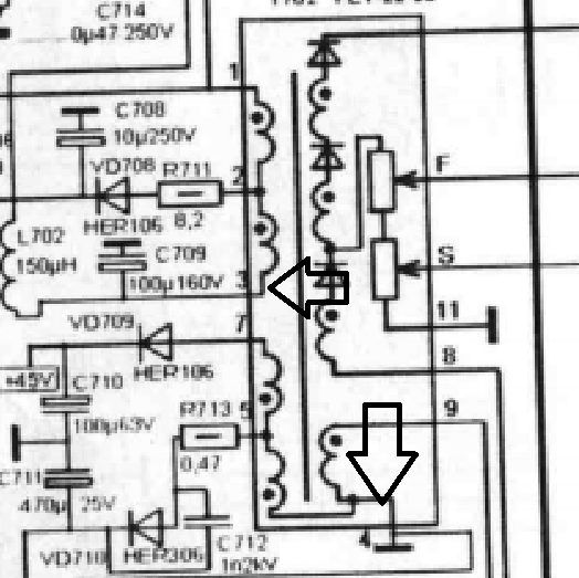 Теперь сними(замеряй) остальные напруги с ТДКСа(питание ВУ,кадровой)