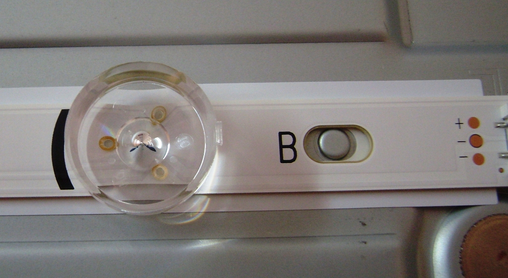 2. Две планки - не светятся по 1 светодиоду, одна планка – не светится полностью. Оторвал линзы светодиодов - все 4 сгоревшие (чёрные точки, трещины).