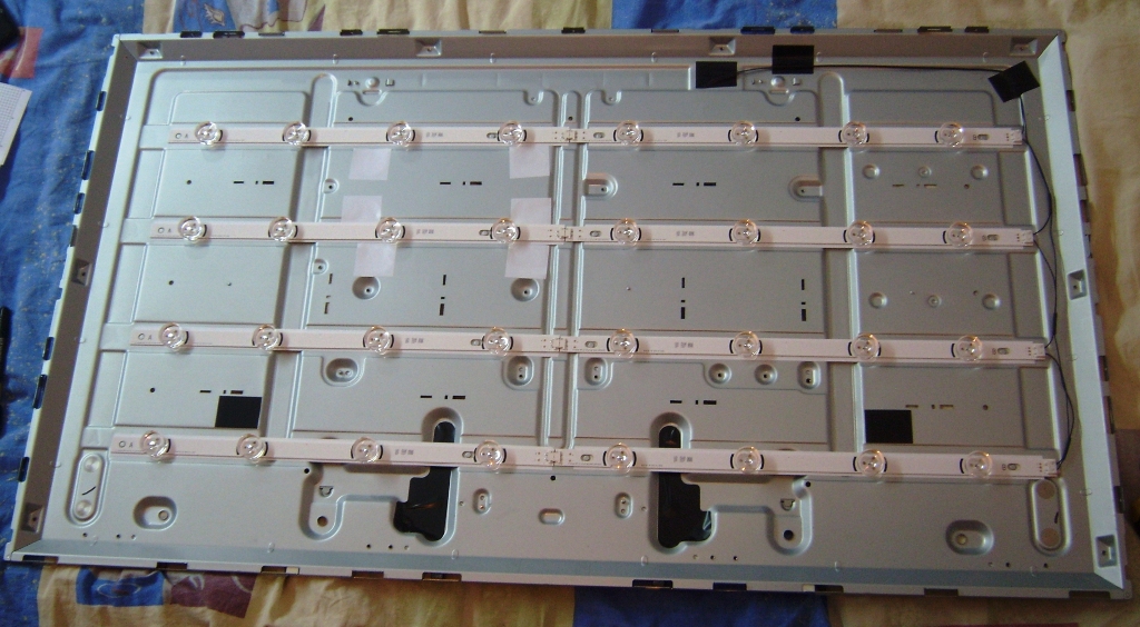 Поставил новые планки светодиодов, все 8шт. Убрал 2 резика в цепи ШИМ подсветки. На ТВ убавил подсветку до 90% в пользовательском режиме.