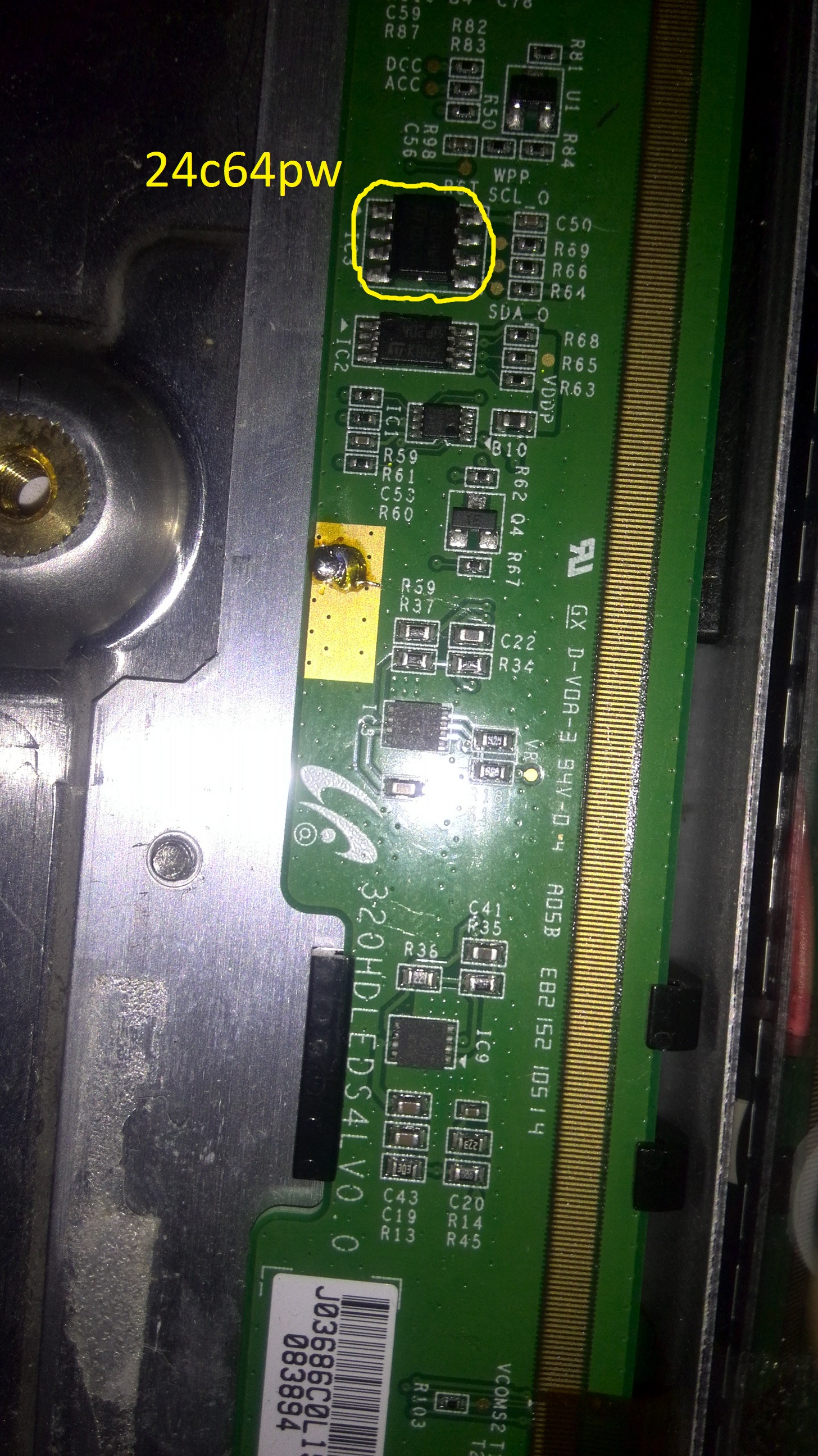 К матрице пробовал подключать универсальный скалер, с универсальным как и с родным нет разворота экрана по вертикали. Напряжения по контрольным точкам T-CON вроде все в норме. После замены микросхемы LAXC021TOB-Q1 симптомы остались те же. Хочу прошить Flash 24с64pw. Подскажите где можно скачать прошивку, и могут быть такие симптомы матрицы из за прошивки.